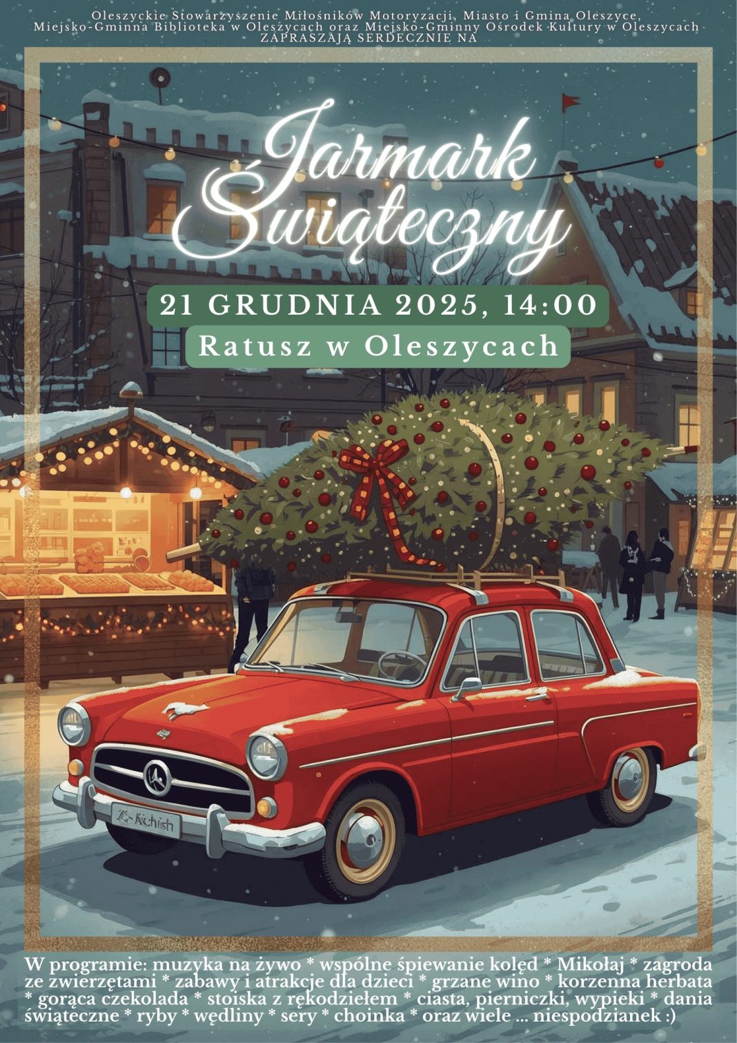 Już 21 grudnia dziedziniec Ratusza w Oleszycach wypełni się świąteczną atmosferą. Przed nami tradycyjny Jarmark Świąteczny pełen rozmaitych atrakcji.