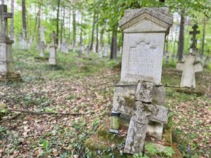 Jeden z najpiękniejszych cmentarzy na Roztoczu, to właśnie ten w Starej Hucie. Ukryte w lesie nagrobki w większości powstały z kamienia bruśniejskiego. Można tu znaleźć zarówno najstarsze zachowane groby z połowy XIX wieku, jak i te z czasów końca II Wojny Światowej. Istnieje przypuszczenie, że w pobliżu mogła niegdyś stać cerkiew, która stanowiła nieodłączną część tego tajemniczego miejsca. Stara Huta to miejsce na dłużysz przystanek podczas podróży – tutaj czas się zatrzymuje. Znana w kartach historii jako Hucisko Stare, pojawia się na scenie dziejowej na początku XVIII wieku. To właśnie tutaj, w 1717 roku, Adam Mikołaj Sieniawski herbu Leliwa w porozumieniu z Konstantem Fremelą zakłada hutę szkła kryształowego. Była to jedna z sześciu takich hut w całej ówczesnej Rzeczypospolitej, a zarazem druga po Bielanach pod Warszawą.